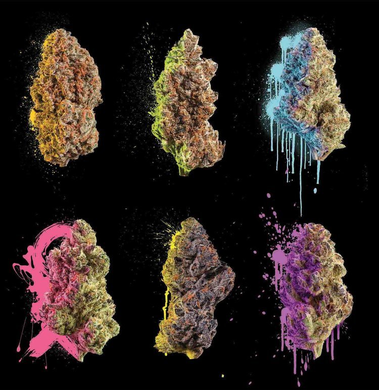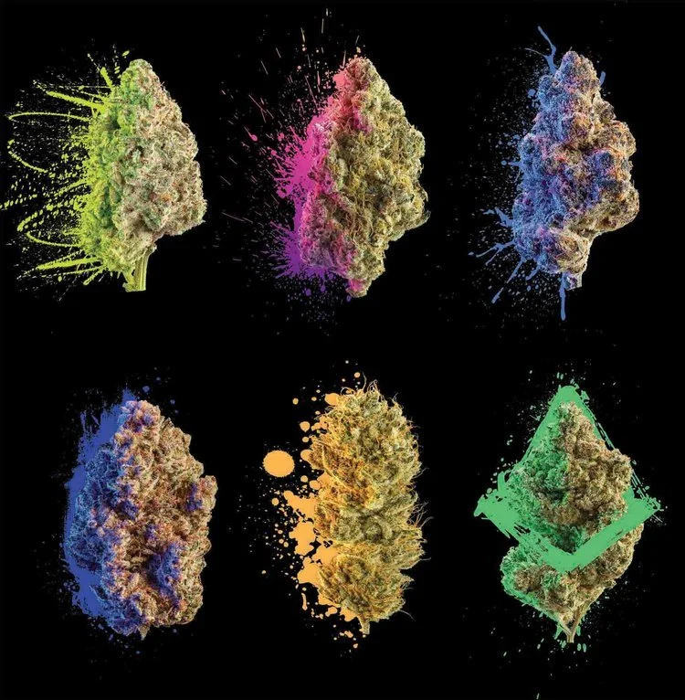 I PARTNERED WITH A LOCAL GRAFFITI ARTIST TO CREATE A CUSTOM MURAL, SPLIT ACROSS STRAIN LABELS TO FORM A COLLECTIBLE SERIES. I DIRECTED OUR PHOTO STYLE USING FOCAL STACKING AND COLORED GELS FOR MAXIMUM DETAIL AND BRAND ENERGY. I ALSO DESIGNED A TERPENE GRAPHIC SERIES USING VIVID COLOR AND BOLD TYPE TO BRING PLANT SCIENCE TO LIFE VISUALLY.